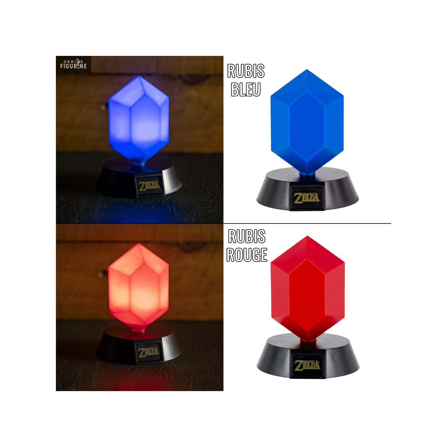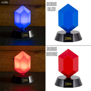 Official night light of your choice between blue or red rupee which measures approximately 10 centimeters high. It works with two AAA batteries (not included). The manufacturer is Paladone.
