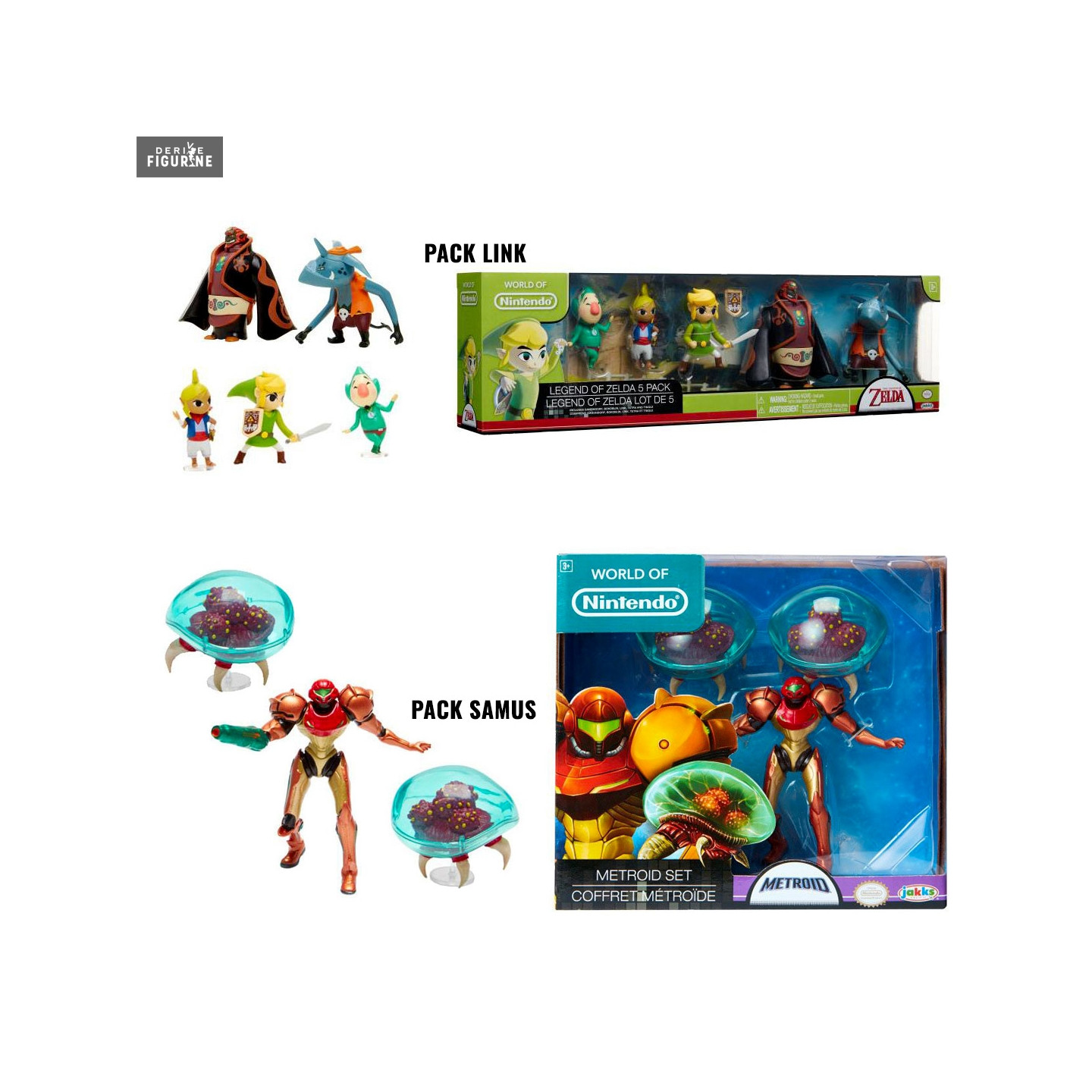 Nintendo has many games with each a very particular universe. Here we are facing a duel that opposes five figures of The Legend of Zelda Wind Waker to three of Metroid. So I do not know what will be your favorite, but both packs are really tempting.