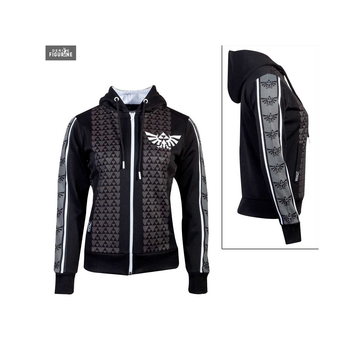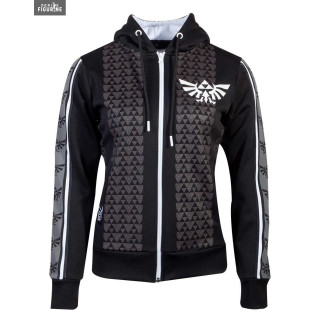 The Legend of Zelda women's hoodie is the Triforce, the symbol and emblem of the kingdom of Hyrule. The jacket sports very chic colors with a black and white that works perfectly and changes the usual clothes found on the license.