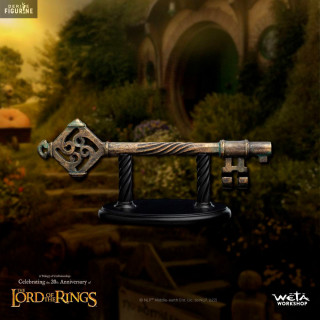 Official figure of house key Bag End measuring approximately 15,5 x 6,7 x 6 centimeters, scale 1/1 in zinc alloy. The manufacturer is Weta Workshop.