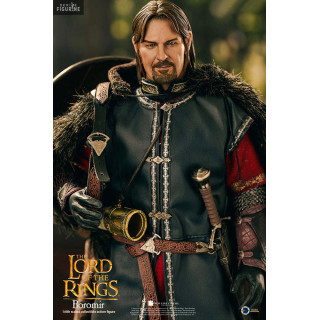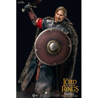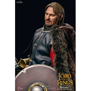 Official figure of Boromir which measures approximately 30 centimeters high to scale 1/6. The manufacturer is Asmus Collectible.