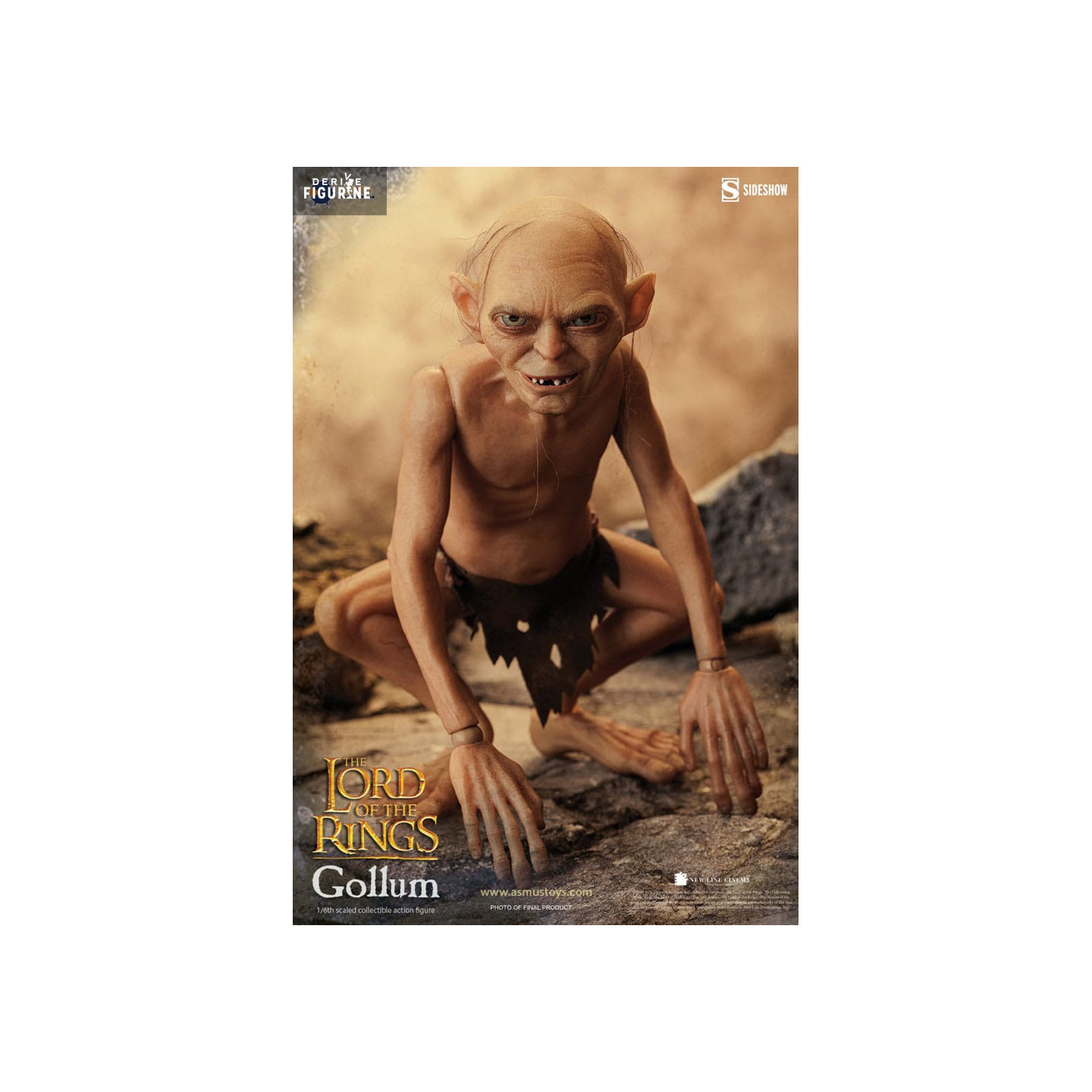 Official figure of Gollum which measures approximately 20 centimeters high, scale 1/6. The manufacturer is Asmus Collectible.