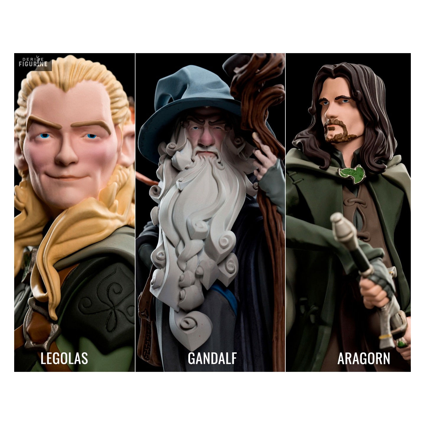 Official figure of your choice in vinyl between Aragorn, Gandalf or Legolas. The manufacturer is Weta Workshop.