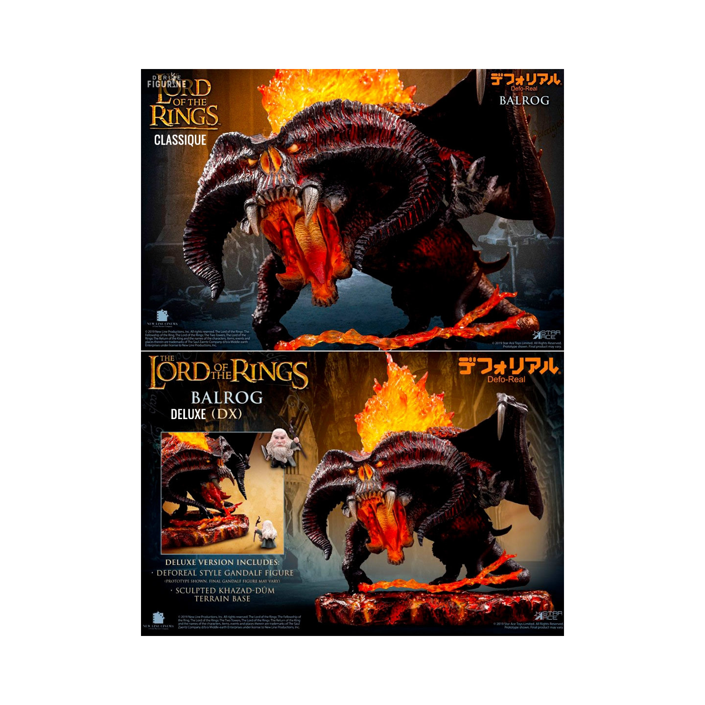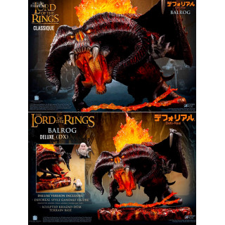 Balrogs are powerful demonic creatures that have the ability to spit fire. In combat, they can also use a kind of fire whip. So you have the choice between the Classic or Deluxe version, the Deluxe has in addition a nice base and a small decor of Gandalf to recreate their face to face.