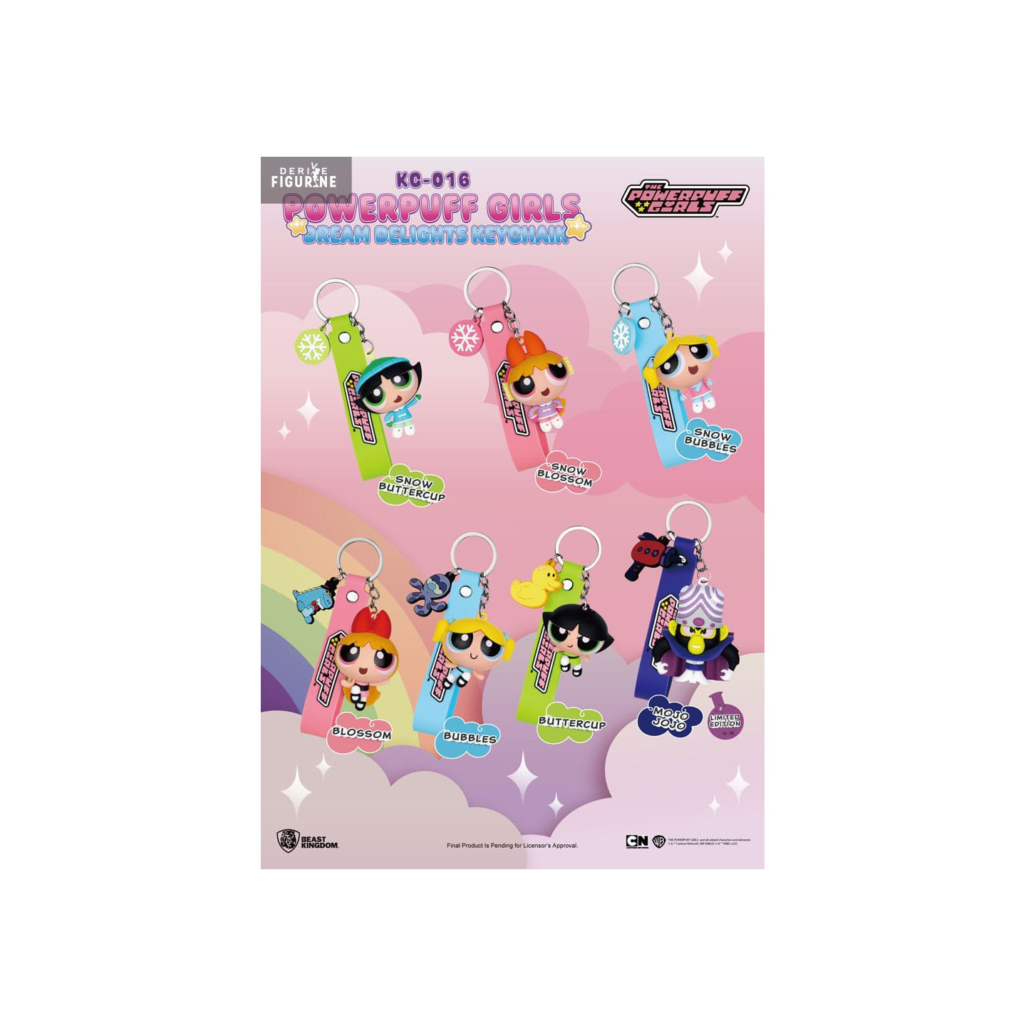 The Powerpuff Girls join the Dream Delights keychain collection by Beast Kingdom. Blossom, Bubbles, Buttercup, and their nemesis Mojo Jojo appear in this colorful nostalgic lineup, including special Snow variants that make the collection even more unique.