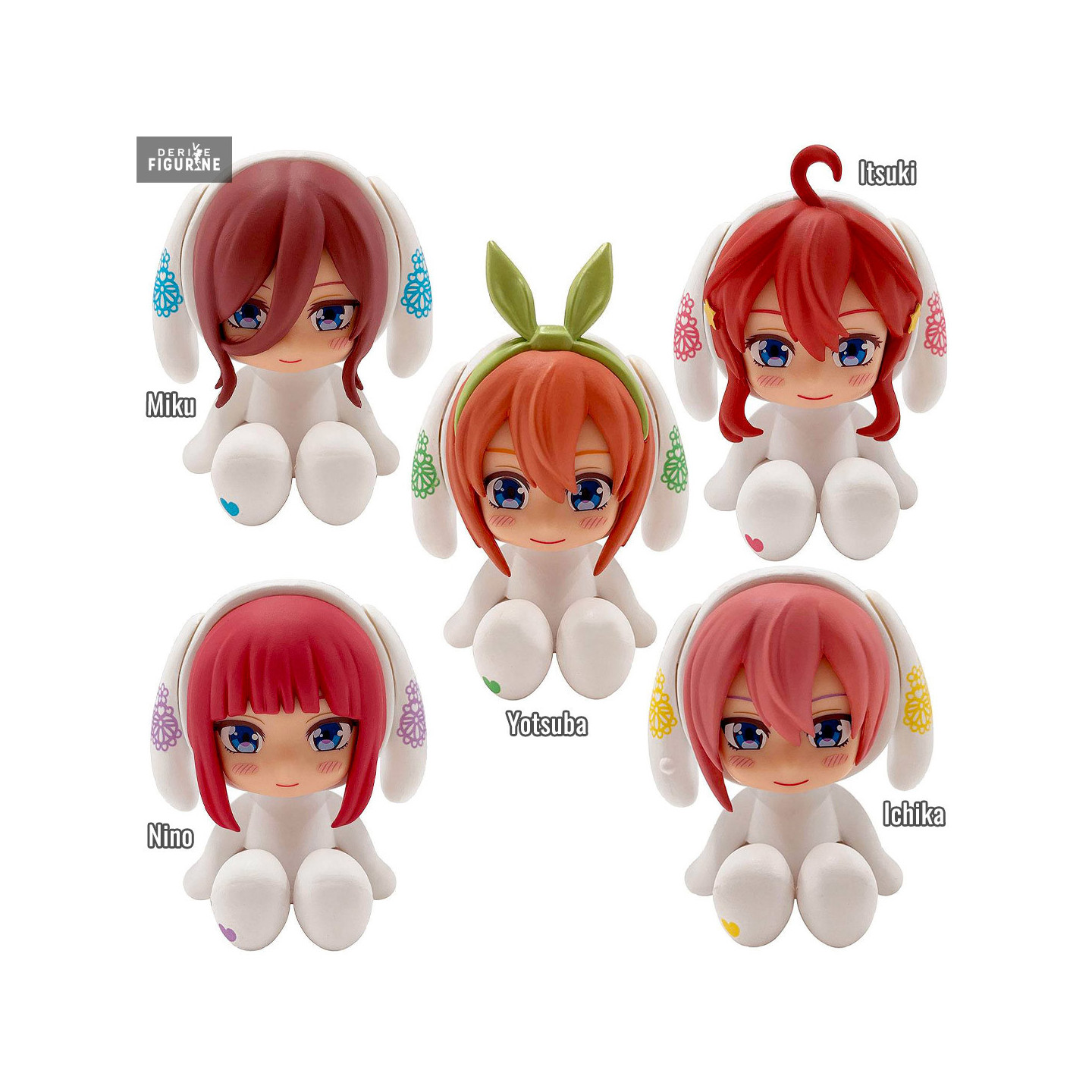 A new wave of figurines from the Chocot collection has just been released and so you have the choice between each of the Nakano quintuplets, namely Yotsuba, Itsuki, Nino, Miku or Ichika. They still have a bunny outfit, but this time they are white like wedding dresses. They are equipped with a suction cup at the back of the head to serve as a support for your laptops when you watch videos on them.