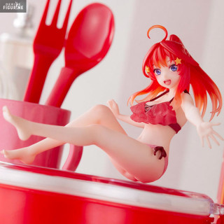 Itsuki is the last born of the Nakano quintuplets. She is certainly the one who attaches the most importance to her studies and she has a sensitive character, having tears easily when her sisters argue. She takes advantage of the good weather here to swim, in a pretty red swimsuit, on a matching buoy.