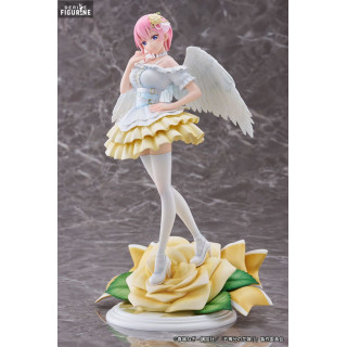 This figure features Ichika in a dazzling angelic outfit, adorned with delicate white wings and a dress in pastel shades of yellow and white. Her gentle, thoughtful expression, coupled with her elegant pose, brings her warm and caring personality to life. The base of the figurine, designed in the shape of a yellow rose, adds a touch of romance and sophistication, reinforcing the angelic appearance of the character.
