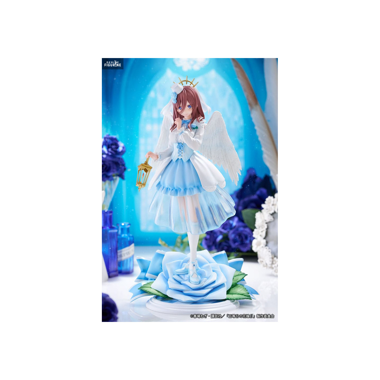 Miku Nakano is known for her introverted personality and her love of history, particularly Japanese historical figures. In "The Quintessential Quintuplets", she stands out for her calm and thoughtful nature, but also for her devotion and tenderness towards her sisters. This figurine features her in angelic form, adding a touch of divinity to her natural charm.