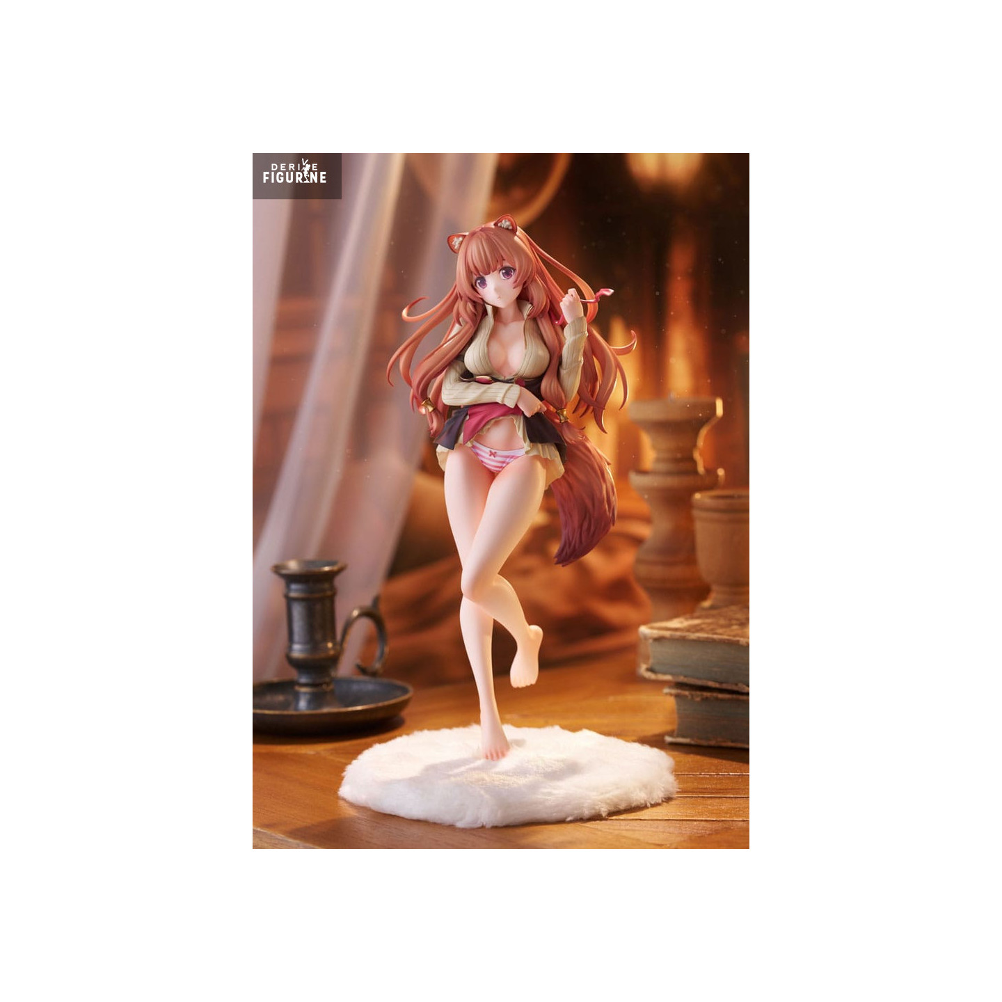 The "Body Pillow" figurine of Raphtalia, measuring approximately 23 cm and crafted at a 1/7 scale, beautifully captures her beauty and charisma. Made of high-quality PVC by Kadokawa, this piece highlights the fine details of her long reddish-brown hair, Tanuki ears, and bushy tail. Her slightly shy posture, accompanied by a gentle expression, recalls the calm and tender moments of the character. The figurine's meticulous finishes, from the texture of her clothes to the expression on her face, offer a faithful representation of the original work. This is an ideal piece for collectors looking to add a touch of charm and softness to their collection dedicated to "The Rising of the Shield Hero."