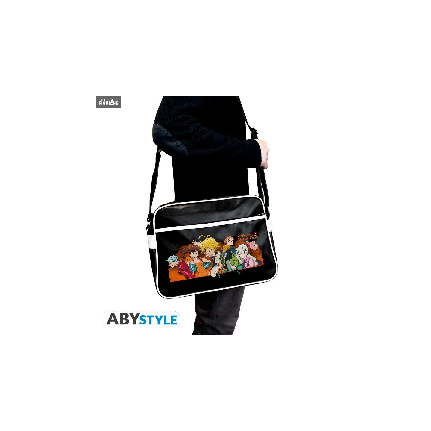 Polyurethane The Seven Deadly Sins bag that measures approximately 29x38 centimeters. It has a zipped outer pocket, a zipper for the main pocket and an adjustable strap. The manufacturer is ABYstyle.