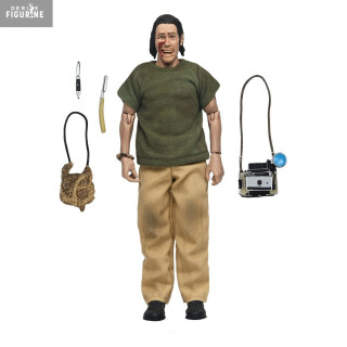 This figure, crafted by NECA, perfectly captures the Hitchhiker’s unique appearance and unsettling demeanor, featuring realistic fabric clothing that reflects his disheveled and eerie style. Standing approximately 20 cm tall, it is fully articulated, allowing collectors to recreate chilling scenes from the film. The included accessories enhance the immersion, featuring a vintage camera, a skin-like satchel, and tools such as a knife and a razor. Every detail, from his creepy grin to his worn-out attire, has been faithfully reproduced to pay tribute to this iconic horror movie character.