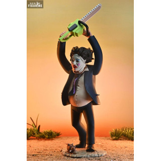 Get ready to celebrate the 50th anniversary of the legendary Texas Chainsaw Massacre with the Leatherface (Pretty Woman) figure from the Toony Terrors collection by NECA. This special edition captures the terrifying essence of Leatherface in a cartoon style, perfect for adding a touch of dark humor to your collection.