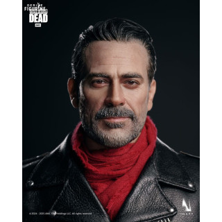 This 1/6 scale figure captures Negan in his iconic outfit: a black leather zipped jacket, dark pants, sturdy boots, and a vivid red scarf around his neck. His relaxed yet menacing stance, with Lucille in hand, perfectly conveys the essence of his cruel but charismatic personality. His smirk and confident gaze embody his threatening aura.