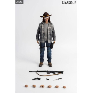 The son of Rick and Lori, Carl Grimes is a young boy who is one of the main characters in the story of The Walking Dead and also faces the famous and dangerous zombie antagonists, the Rangers. The classic version allows you to get the figurine of the character and some accessories while the Deluxe offers, in addition, two accessory very nice because it is the poncho and the shirt of Carl which offers more opportunities to the exhibition.