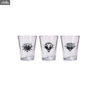 Set of three Witcher school emblems shots glasses. Available a little cheaper with a manufacturing defect (see photo). The manufacturer is Dark Horse.