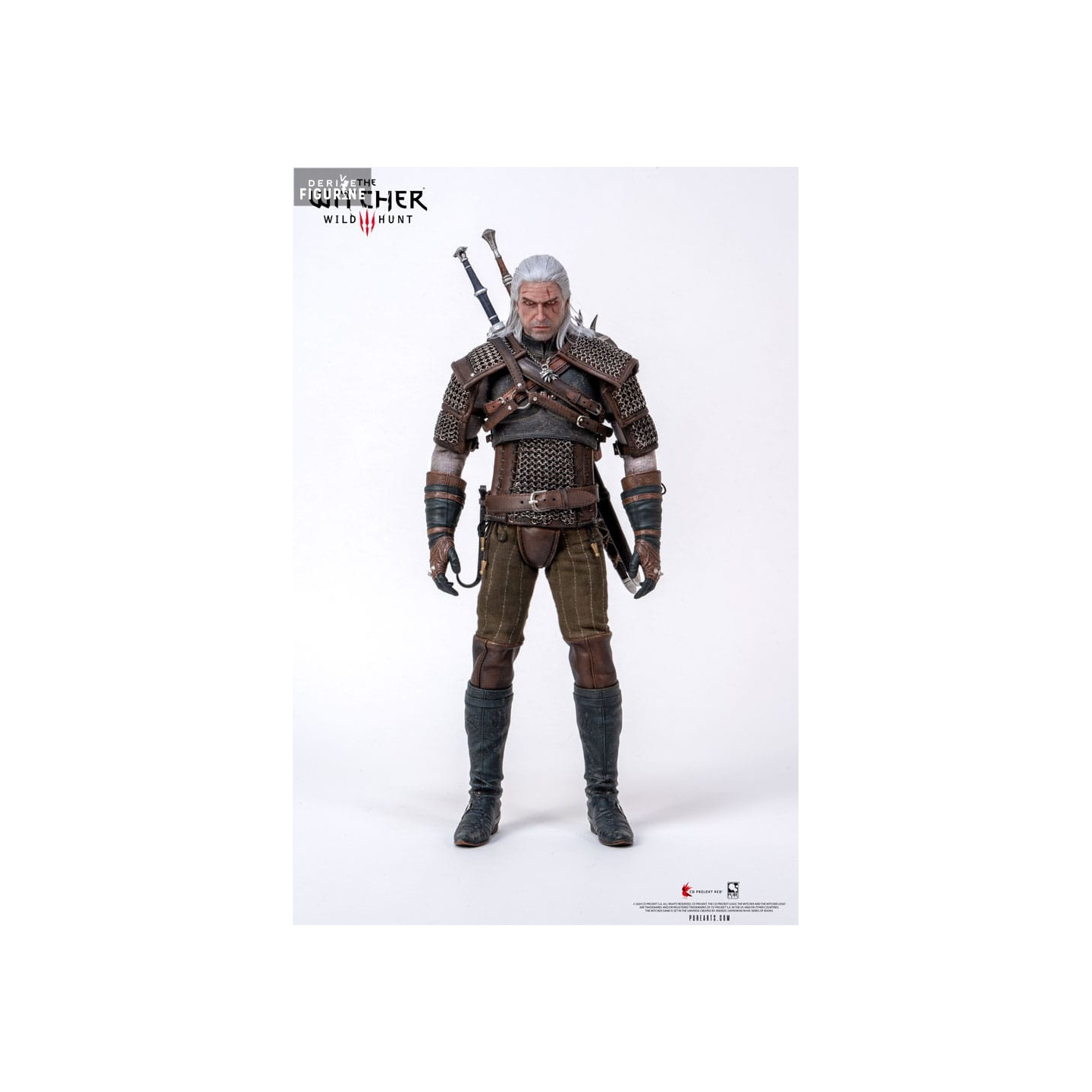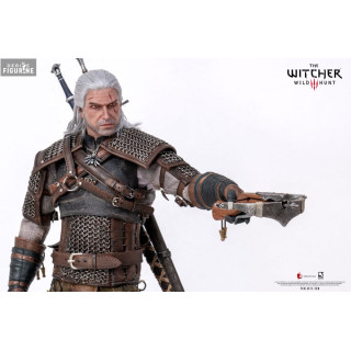 Official figure of Geralt of Rivia which measures approximately 30 centimeters high, scale 1/6. The manufacturer is Pure Arts.