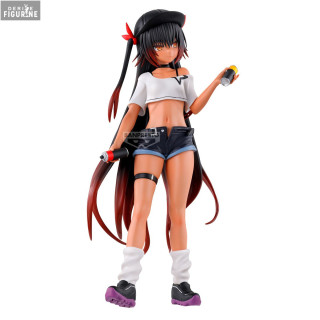 Crafted from sturdy PVC, this 21 cm statuette stands out with its expertly blended color gradients—from her sun-kissed skin to the bi-tonal hair tips—and fine texture work: the faux-leather effect on the shorts, the lifelike flow of her hair, and the subtle sheen of her top create a striking realism. Its dynamic pose and precisely painted accessories make it a captivating collector’s piece.