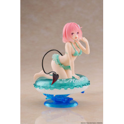 Momo looks like she’s enjoying a very on-brand day at the pool, princess succubus style. This official PVC figure stands about 10 cm tall and is part of Taito’s Aqua Float Girls collection. The To Love-Ru heroine is shown kneeling on a clear aqua-colored float ring, wearing a playful smile that makes it feel like she’s already plotting her next romantic scheme.