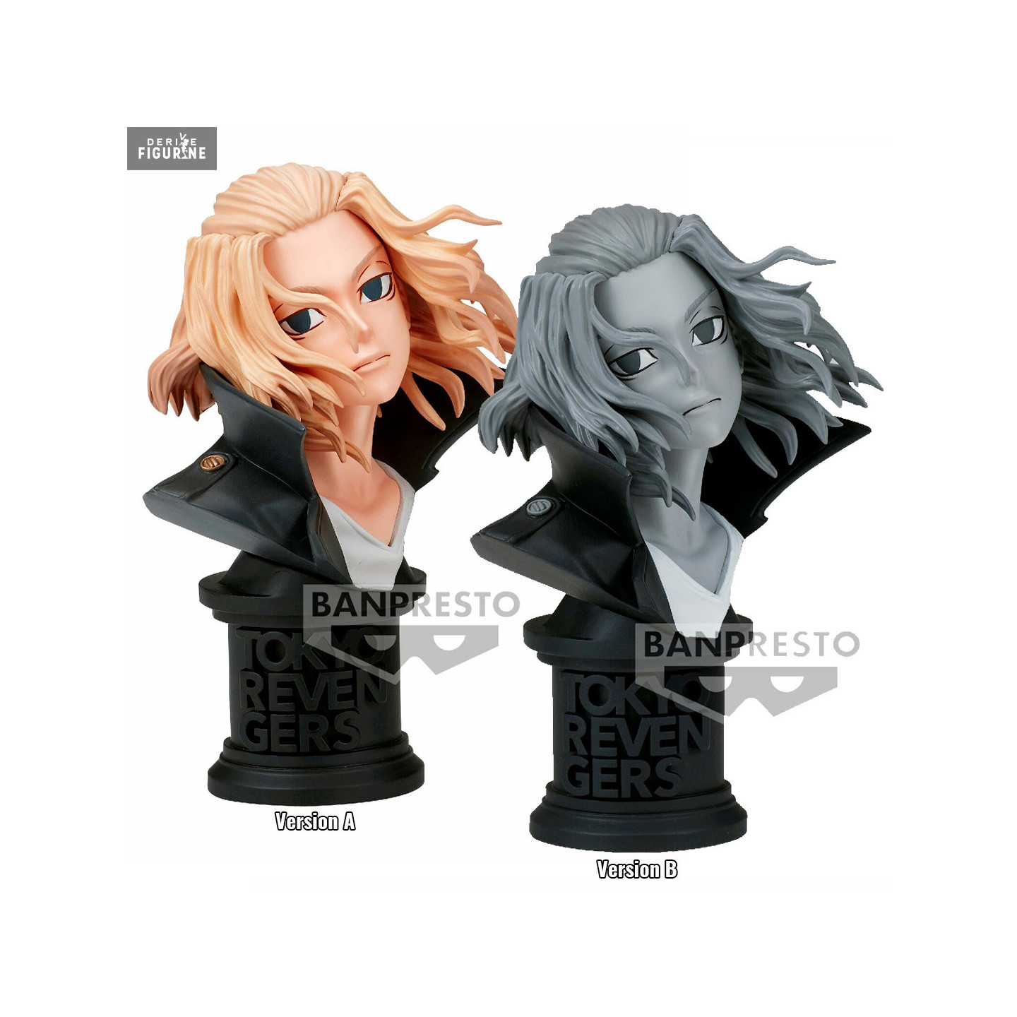Tokyo Revengers offers a magnificent figurine in the form of a bust for the leader of Tokyo Manjikai Manjiro Sano alias Mikey. Two options are available to you, either the A which offers the colorful face of Mikey or the version B which opts rather for a rather classy black and white, all for the Faceculptures collection.