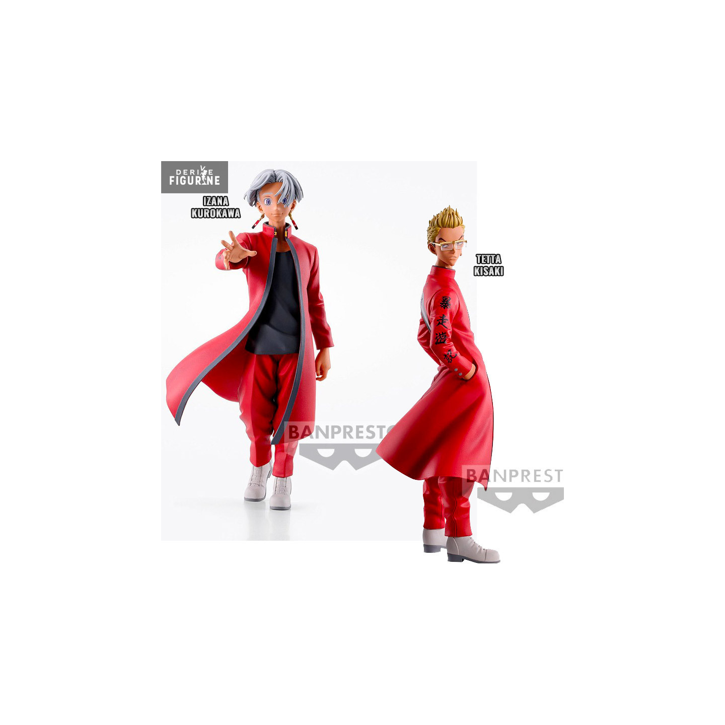 Discover the dark depths of the "Tokyo Revengers" characters through two captivating figurines. Izana Kurokawa, the former eighth ruler of the Black Dragons and leader of the Tenjiku, is an enigmatic character at the heart of the Tenjiku Arc, while Tetta Kisaki, the series' main antagonist, is renowned for her rapid rise within the Toman. and his ruthless actions, most notably in the murder of Hinata Tachibana. These figures will capture the intensity and complexity of these characters, adding a touch of mystery and suspense to your collection.