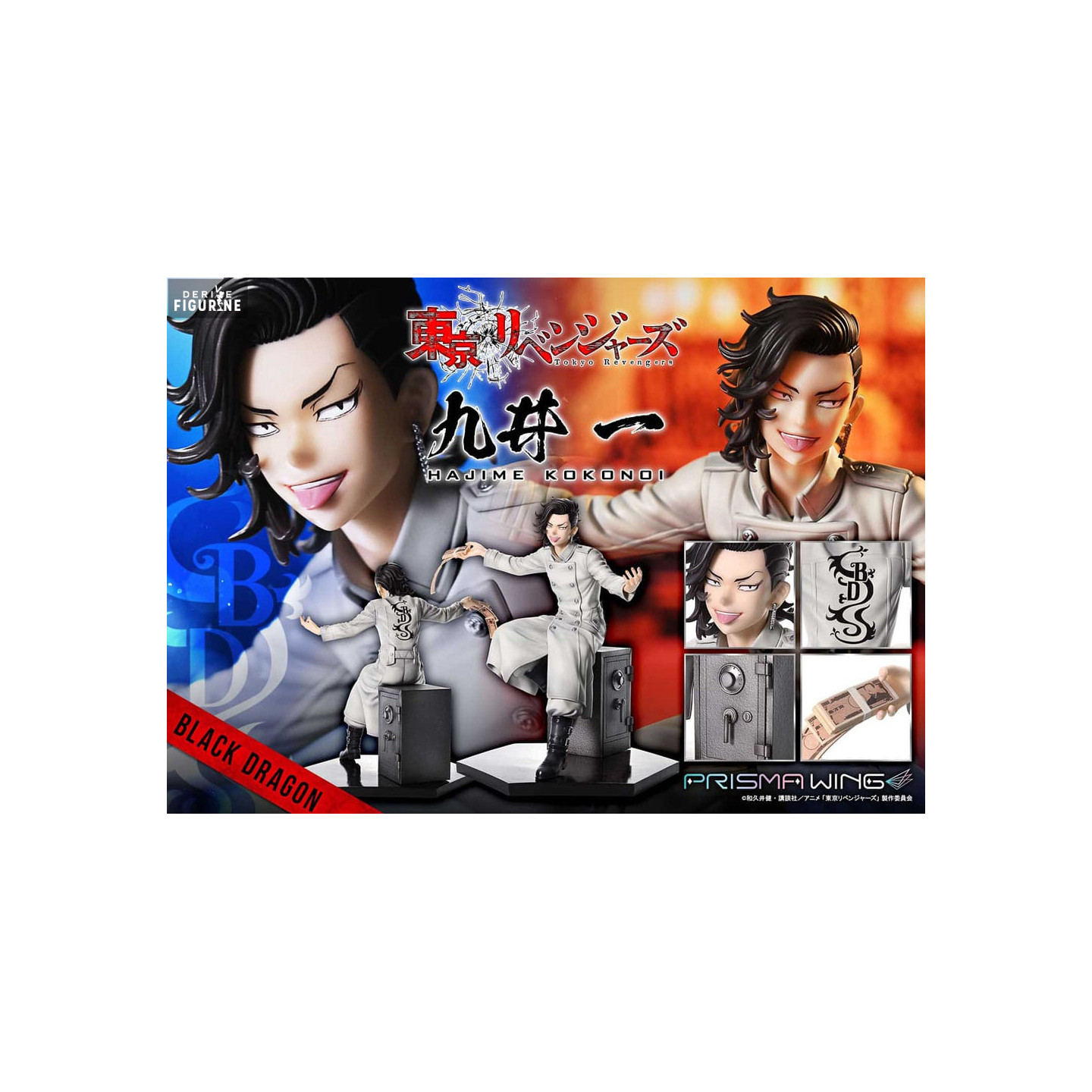 Here is the official Hajime Kokonoi Bonus Version figure from the series Tokyo Revengers. Standing approximately 22 centimeters tall and made to a 1/7 scale, this PVC figure perfectly captures Hajime's charisma and relaxed demeanor, as a key member of the Black Dragons. The figure depicts Kokonoi in his iconic coat, casually seated on a safe, referencing his financial expertise and past with the gang.