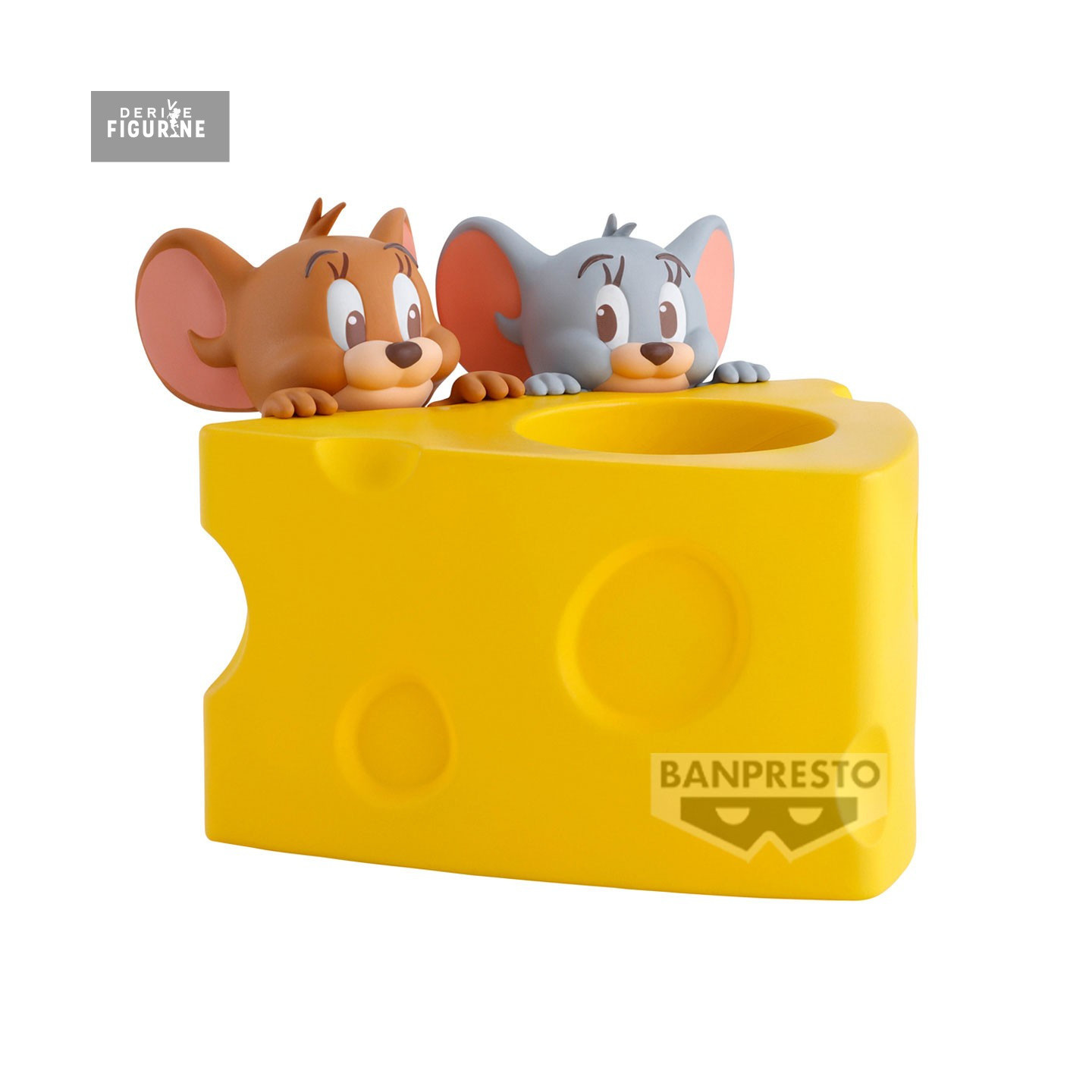 This Figure Life piece depicts the two mice peeking out from behind a vibrant yellow cheese block. Jerry sits on the left and Tuffy on the right, each paw resting on the cheese edge with wide, curious eyes. The proportions match the cartoon: rounded ears, sculpted snouts, and perfectly captured expressions.