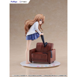 In Toradora!, Taiga Aisaka is the tiny high school girl with a fierce temper, known as the "Palmtop Tiger" despite her small size. Behind her rough behavior she hides a fragile side and complicated feelings, especially when it comes to Ryuuji. This official PVC figure stands about 18 cm tall in 1/7 scale, part of the F:Nex line and manufactured by FuRyu, and captures her in a quiet everyday scene as she puts on her socks beside an armchair, as if you had just walked into her room.