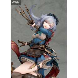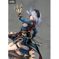 The design stands out for its intricate details: her classic blue maid outfit with refined embellishments, black stockings paired with elegant boots, and a dramatic base featuring golden gears and shattered rocks. Every element reinforces her powers and her role as timekeeper.