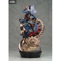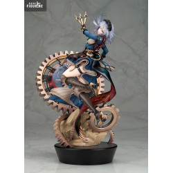 This figure portrays her in a dynamic pose, as if caught in a moment frozen in time. Surrounded by gears and a massive clock face, Sakuya exudes grace and power, poised with knives ready to strike. Her flowing silver hair adds to the sense of motion and her command over time.