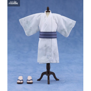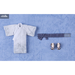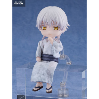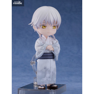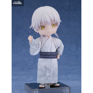 This Tsurumaru Kuninaga Casual Outfit figure, standing approximately 14 centimeters tall, is part of Orange Rouge's Nendoroid Doll collection. Unlike traditional Nendoroid figures, this version features a fully articulated body dressed in real fabric clothing, adding a level of authenticity and realism to the figure. The yukata outfit he wears, with its subdued and elegant tones, highlights his natural calm and grace. The intricate details of the clothing, although minimalist, are carefully crafted to reflect his refined style and relaxed posture.