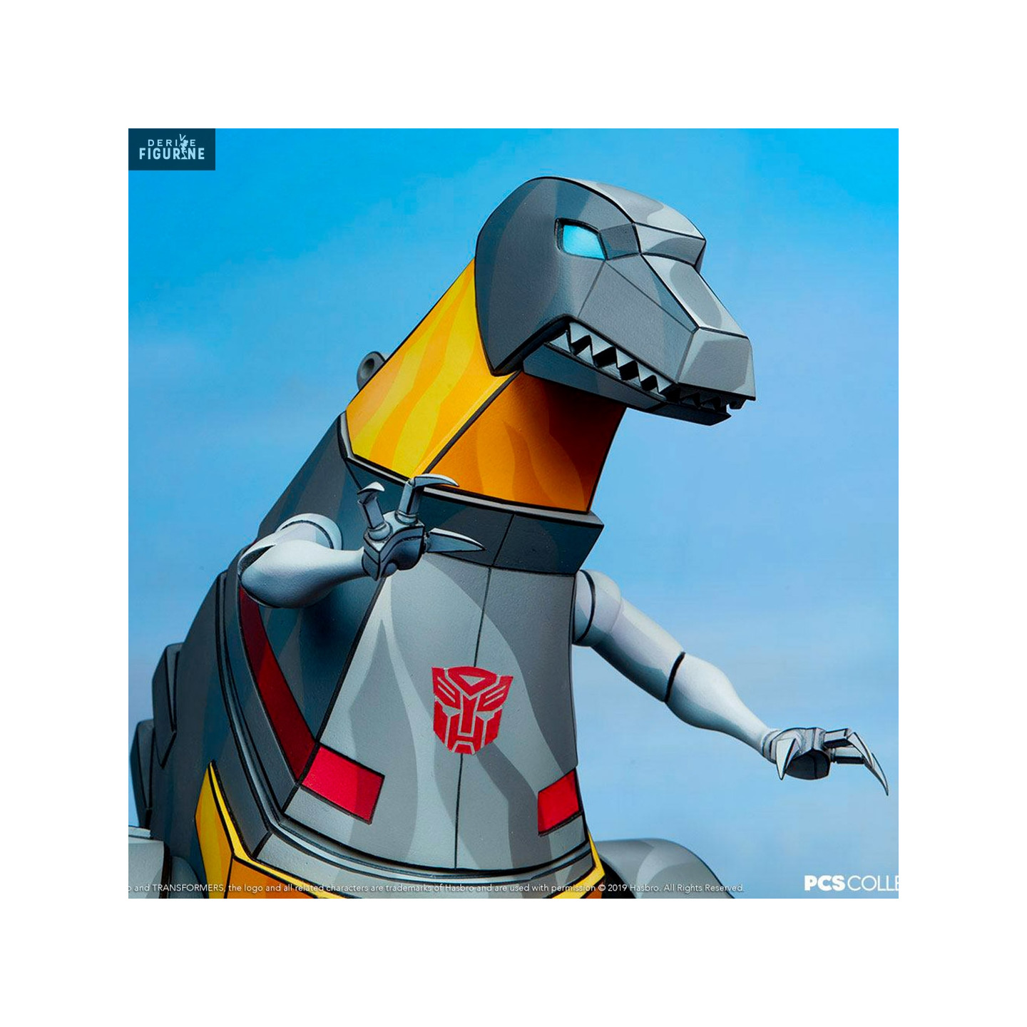 Official figure of Grimlock in resin which measures about 25 x 24 x 29 centimeters. The manufacturer is Pop Culture Shock.