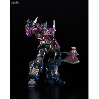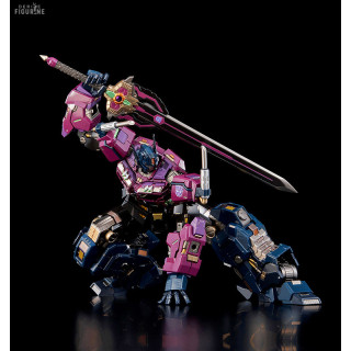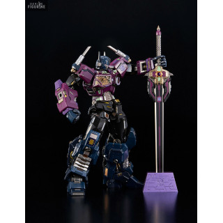 The mecha from the Transformers franchise by the name of Shattered Glass Optimus Prime was once the undisputed leader of the Autobots ... However, thanks to Unicron, Optimus Prime has changed sides and here it is adapted for the Kuro Kara Kuri collection with this sumptuous figure ! Equipped with 5 LEDs, it lights up and it is offered with 3 faces, more than 100 joints and incredible strength and robustness due to its diecast material.