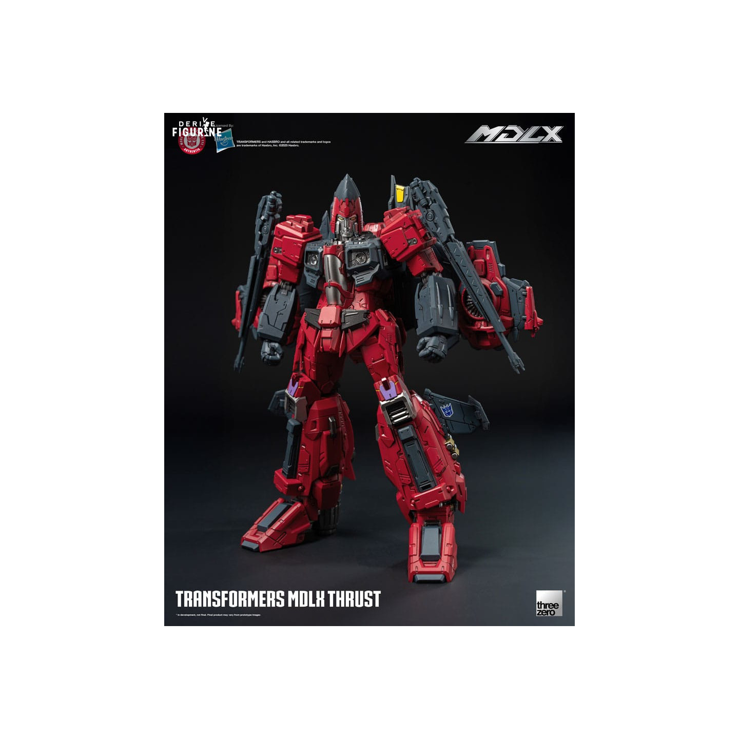 In the Transformers universe, Thrust is one of the most recognizable Seekers, known for his aggressive design and signature red color. A loyal Decepticon, he serves under Megatron as part of the elite aerial strike force—ready to unleash destruction from above. This MDLX edition modernizes his look while staying true to his core character.