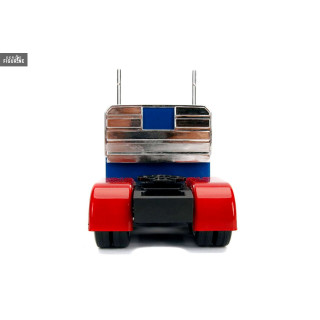 Official replica of T1 Optimus Prime in metal die cast and injected plastic 1/24 scale. The manufacturer is Jada Toys.