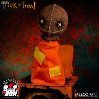 Jack in the box of Sam which measures about 36 centimeters high. It is from the Burst-A-Box collection. The manufacturer is Mezco Toys.