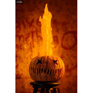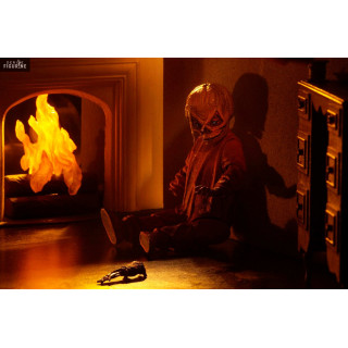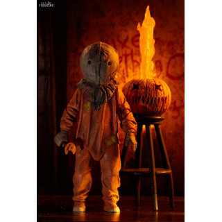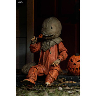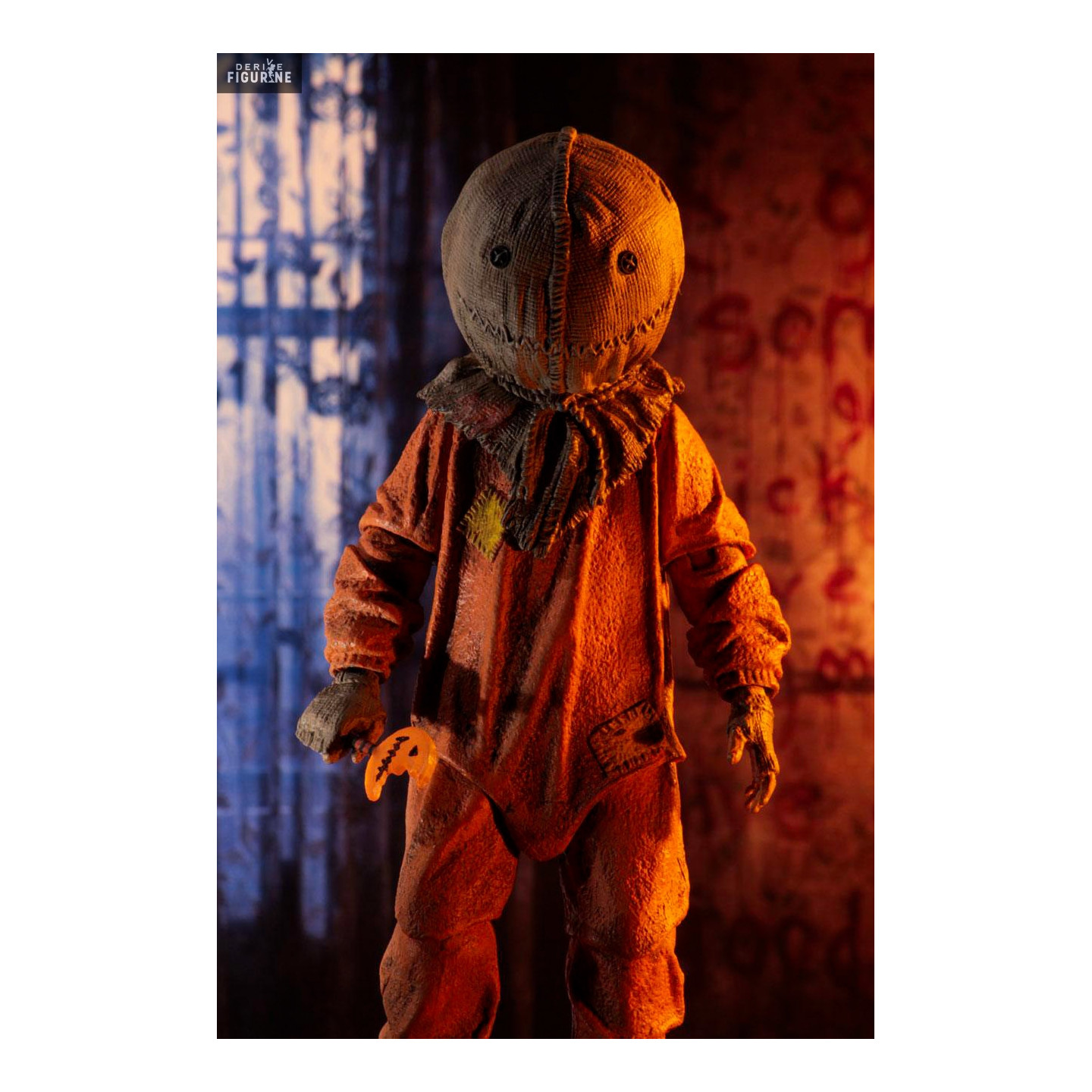 Sam is back again for Halloween with his burlap mask, but this time he did not come empty handed. It can be seen that it has several spare faces, two pumpkins as well as many accessories.