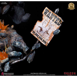 Here is a figurine representing Vash, the hero of Trigun. As you can see on the different pictures, this piece is really full of details and realistic. For example, look at the notice of search or stone chips thrown by the impact of a bullet. It's really a beautiful achievement.