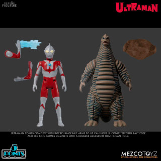 Official figures of Ultraman & Red King Boxed Set which measure about 9 - 10 centimeters high. They are from the 5 Points collection. The manufacturer is Mezco Toys.