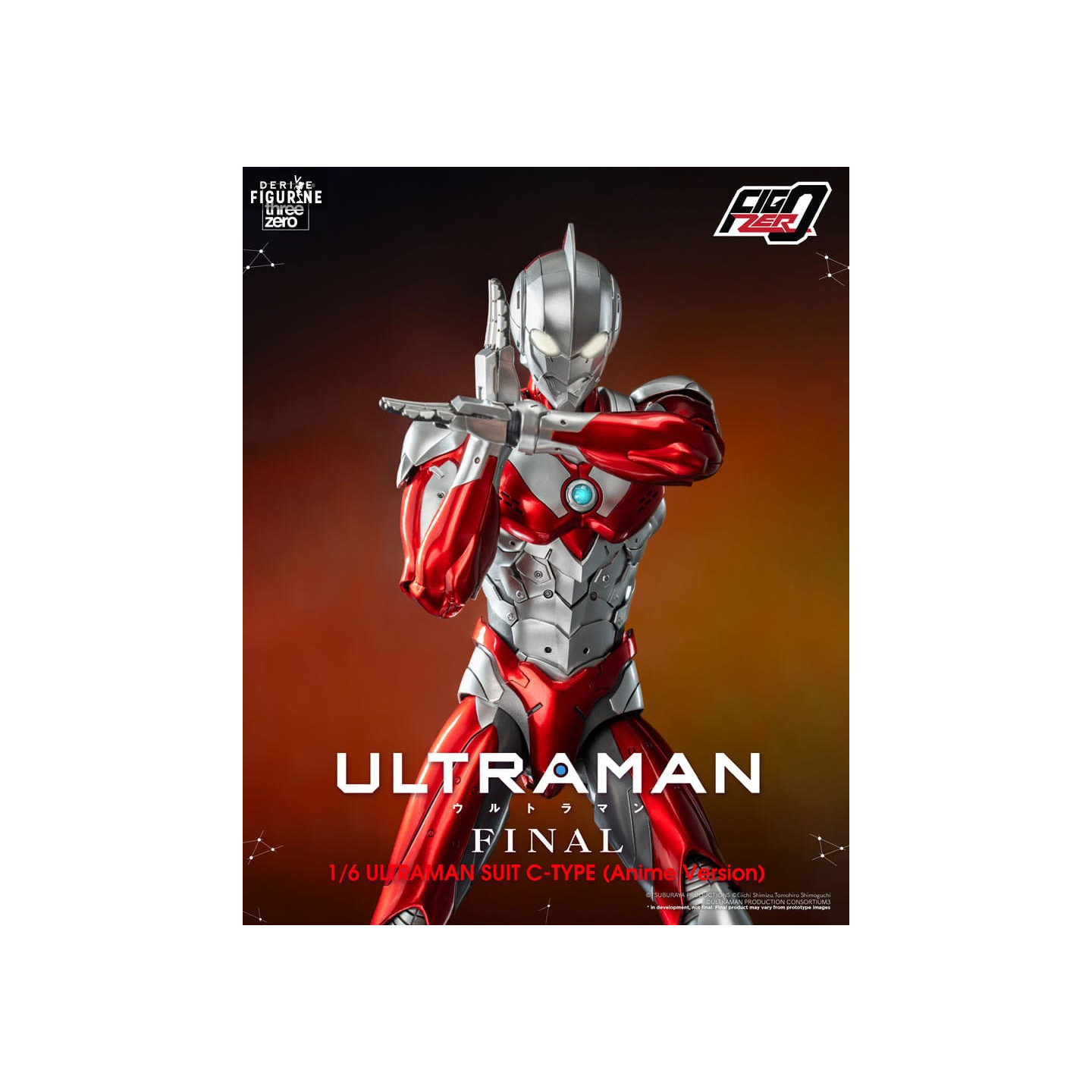 Official figure of Ultraman Suit C-Type Anime Version in PVC which measures approximately 31 centimeters high, scale 1/6. It is from the FigZero collection. The manufacturer is ThreeZero.