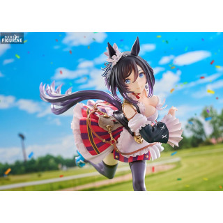 This PVC figure, manufactured by Phat! Company, stands approximately 19 centimeters tall and is crafted at a 1/7 scale. The figurine's finish is remarkable, especially in the intricate details of her complex costume and the translucent effect on her stockings. The colorful base adds contrast and highlights the series' universe. With this piece, Uma Musume Pretty Derby fans can bring all of Eishin Flash's energy and charm into their collection.