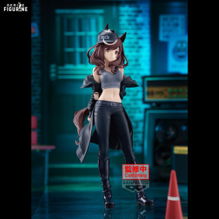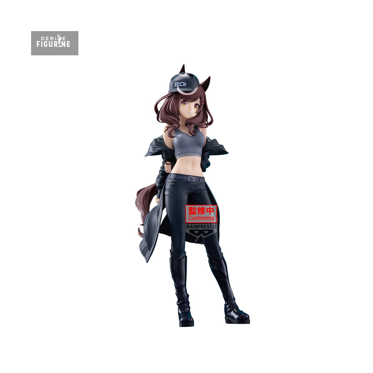 Standing about 19 centimeters tall, this PVC figure captures Matikanetannhauser’s cool, modern look in an elegant black outfit. Wearing a crop top and fitted pants, she exudes an aura of confidence. The details of her outfit, like her jacket draped over her shoulders and her tall boots, enhance her bold, urban style. Made by Banpresto, this high-quality figure will delight Uma Musume fans and add a touch of sophistication to any collection.