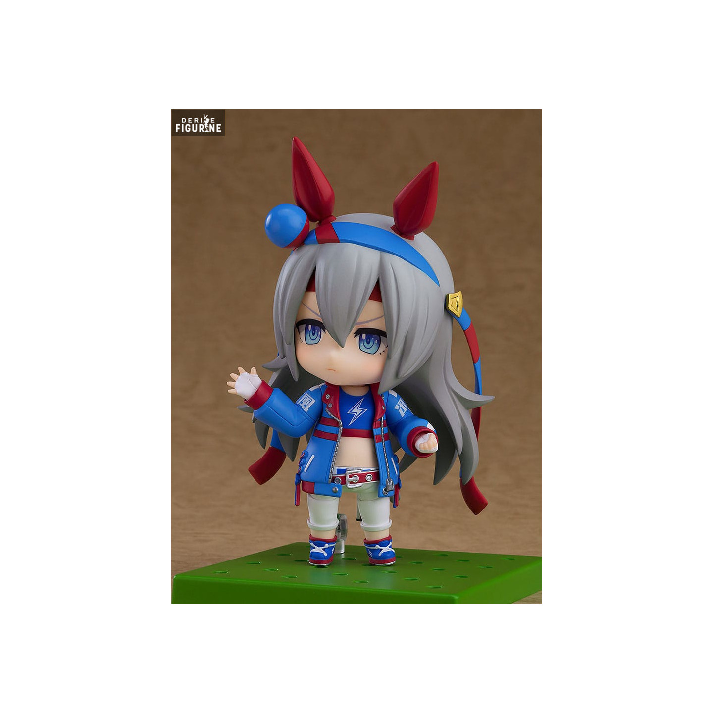 This articulated figure includes interchangeable accessories, such as multiple facial expressions and race-related props like a race board and movement effects, allowing fans to recreate iconic scenes. Standing at approximately 10 centimeters tall, it is crafted in PVC with meticulous attention to detail, true to the aesthetics of the Nendoroid collection by Good Smile Company.