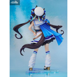 Crafted from PVC at 1/7 scale, the figure stands around 24 cm tall. The finish is clean and detailed: from the fabric textures and dress folds to hair shading and glossy shoes. She stands firmly on a translucent blue triangular base that matches her color scheme.