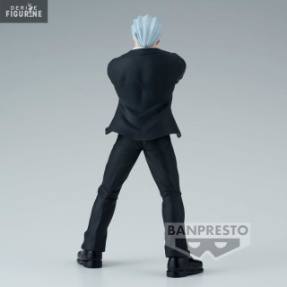 The Andy figurine is a faithful representation of this complex character. Andy, also known as Undead, is a number 9 member of the Round Table. The figure perfectly captures his appearance, with his tall height, impressive musculature and swept-back white hair. His scar above his left eye, caused by the card on his forehead, is a crucial detail of his personality. He also has a "DEAD END" tattoo on his left shoulder, with the "D" reversed, as well as a number "1865" on his left pectoral. Andy's figurine reflects his fearless attitude and sense of justice. His posture shows his determination to protect Fuuko and fight the threats that stand in their way. As a character who has lived a long life, he is depicted with details that reflect his varied skills, including a sword to recall his past as a mercenary. The scar over his eye and the map on his forehead are crucial elements in making the figure recognizable and true to the character. Overall, the Andy figure is an exceptional addition to any Undead Unluck fan's collection, perfectly capturing his distinctive appearance and complex personality.