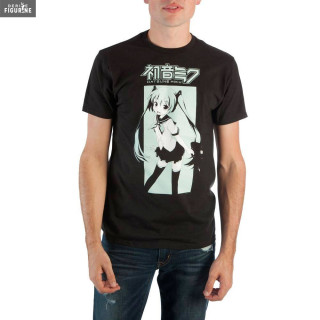 Hatsune Miku official t-shirt for men. It is made of 100% cotton. The manufacturer is Bioworld.