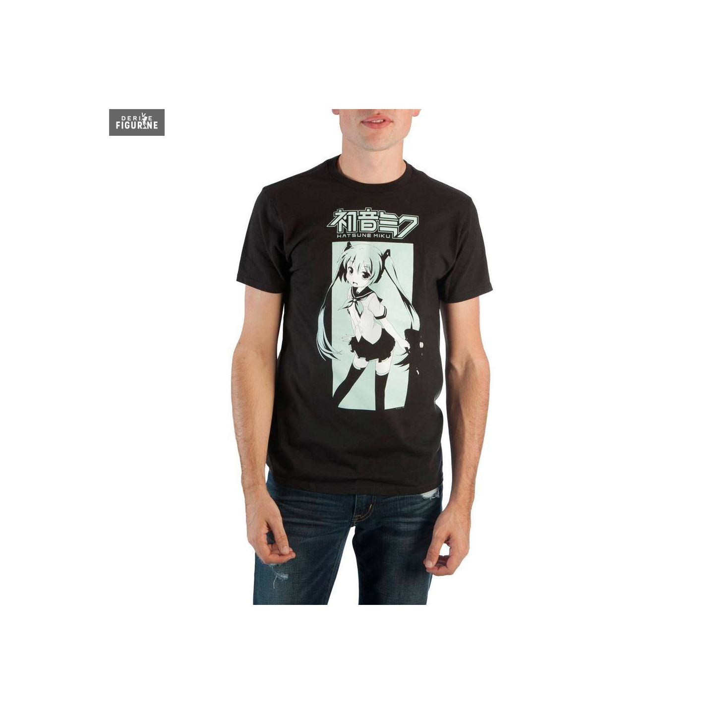 Miku Hatsune may be a very girly vocaloid, but that doesn't mean that men are not allowed to have a t-shirt from her. The proof precisely with this one, where we see it in a rather sober outfit. To show your love for her, you just have to choose the size you want.
