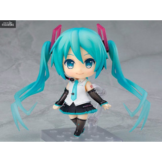 Official figure of Hatsune Miku in ABS/PVC about 10 centimeters high. It is from the Nendoroid collection. The manufacturer is Good Smile Company.