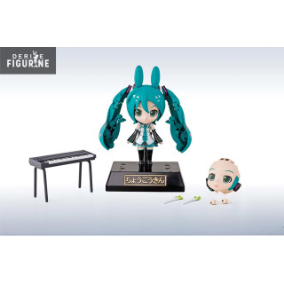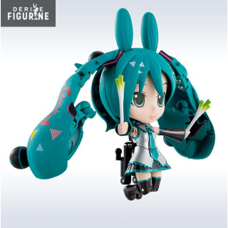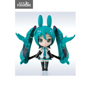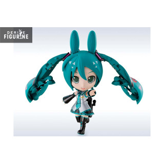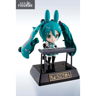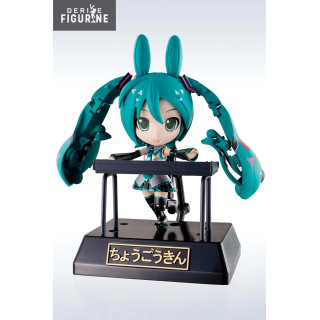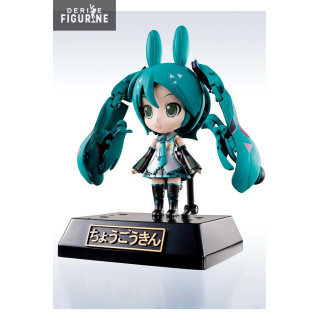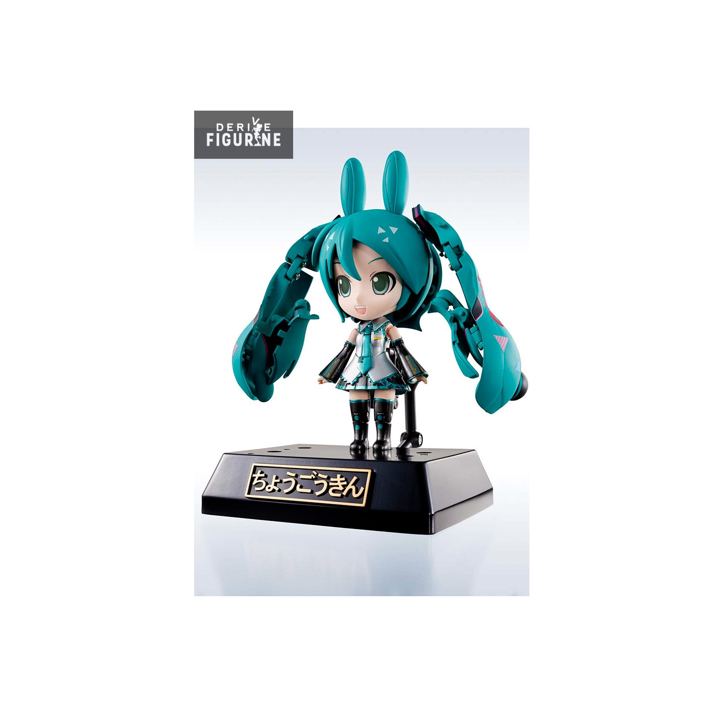 Official Miku Hatsune figure in ABS/PVC about 10,5 centimeters high, from the Chogokin collection. This Miku figurine can have several different shapes. The manufacturer is Bandai.