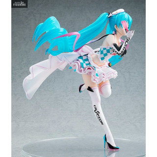 Official figure of Racing Hatsune Miku, 2019 Side Key Visual in PVC which measures about 21 centimeters high, scale 1/7. The manufacturer is Shine.